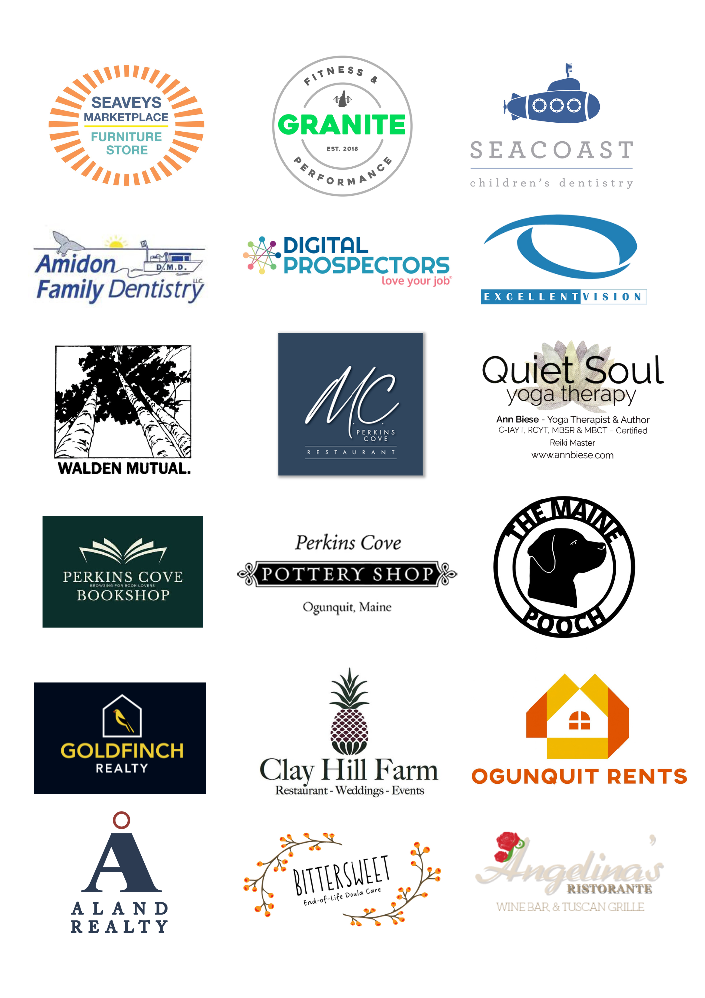 Lobster Shack, Revelations, Haven Homes & Lifestyle at Keller Willliams Coastal Realty, Edward Jones (Taylor Dimick CFP), Perkins Cove Rentals, Modern Love Maine, Nikanos, Spirit Products, Las Olas Taqueria, Beachfire Bar & Grille, Bow Street Beverage, Mornings in Paris, Ogunquit Beach Caddie, Village Toy Funatic, Celtic on Main, Cricket’s Corner Beach & Toy, Ogunquit Playhouse, The Buoy Guy, Barnacle Billy’s, Calluna Fine Flowers & Gifts, Great Bay Home Outlet, La Pizzeria, Odd by Nature, Food For Thought, Old Village Inn, Perkins Cove Kitchen, The Creative Soul, Waves, C and S Toy Shed, Wonder Mountain, Alchemy Jewelry, Backyard Coffee, Lory Fischler, 195 Market, The Lookout, The Shoppes at Cape Neddick, J. McLaughlin, Sail Me Cruises, Hampton Inn & Suites, Restoration Barbershop, Deneen Bernier, Claire Chiesa, Flips Shoe Shop, Rick Coco RE/MAX, Sweats of Ogunquit, The Beach Basket, Bonfire Wellness, Hampton Beach Casino Ballroom, Scully Gallery, Talespin Studio, Quiet Soul Yoga Therapy