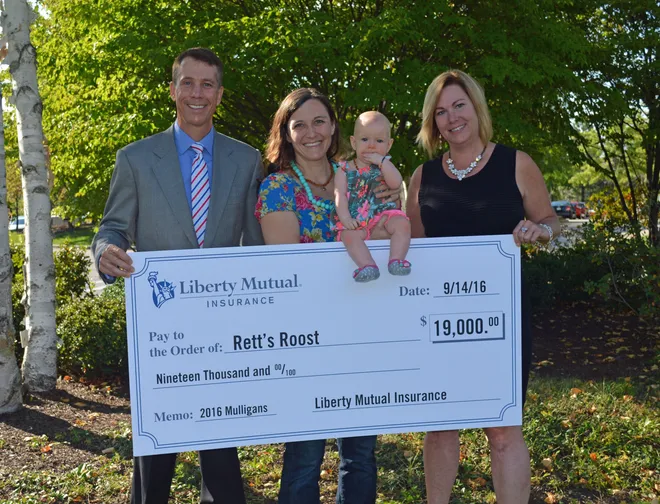DOVER – Rett’s Roost announced a recent donation of $19,000 from the Dover office of Liberty Mutual Insurance.